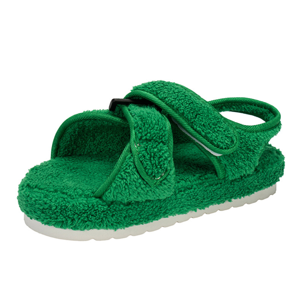 Fall Fashion Women's Sandals Women's Cross-strap Plush Flat Shoes Indoor Comfort Ladies Cosy Household Slippers Non-slip Fluffy Shoes