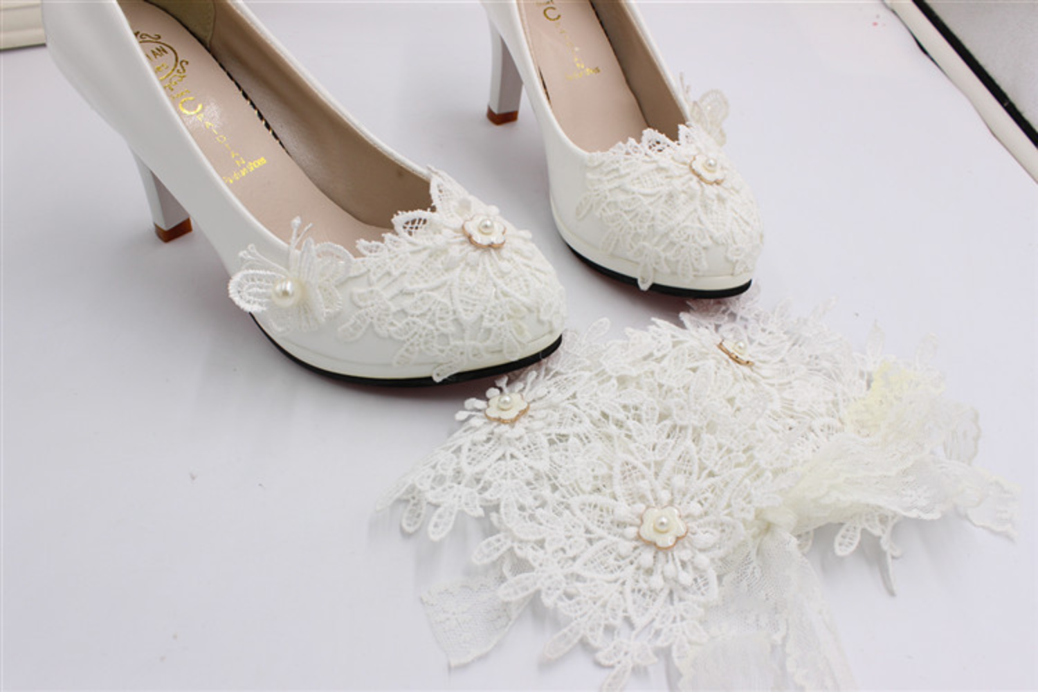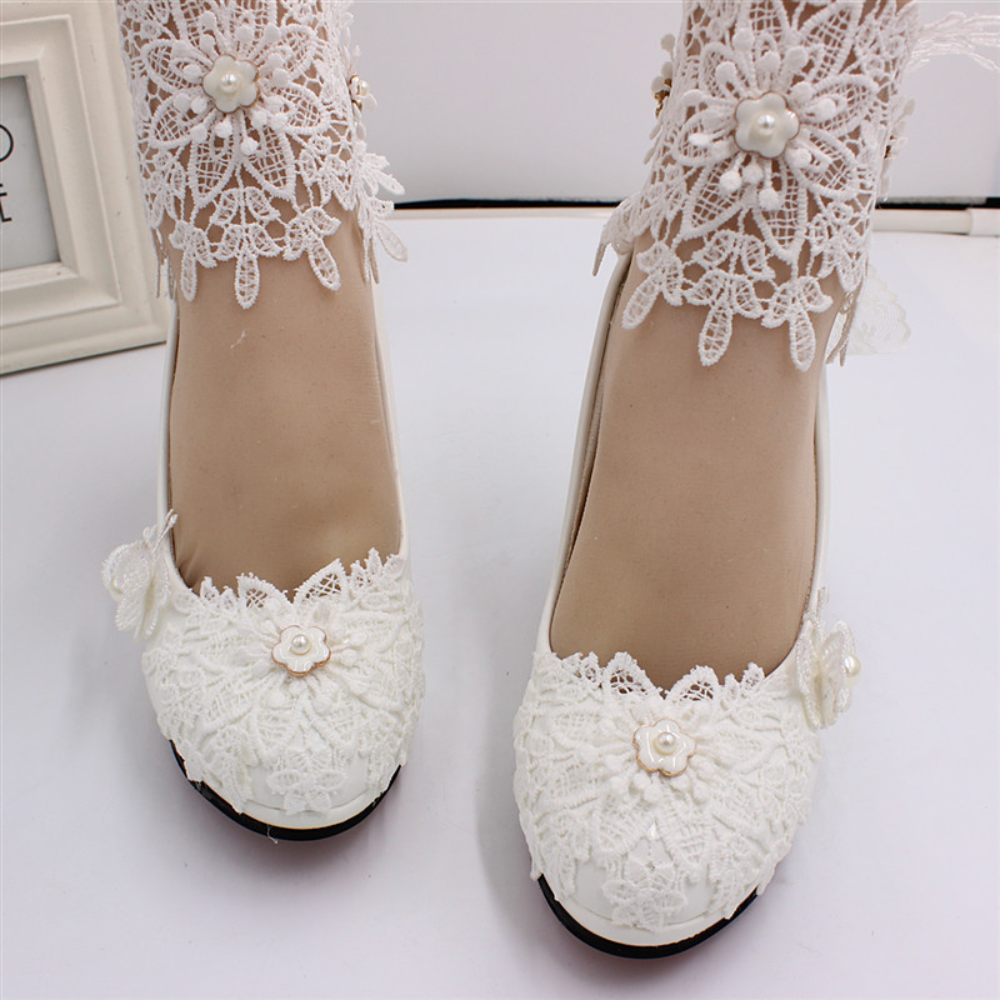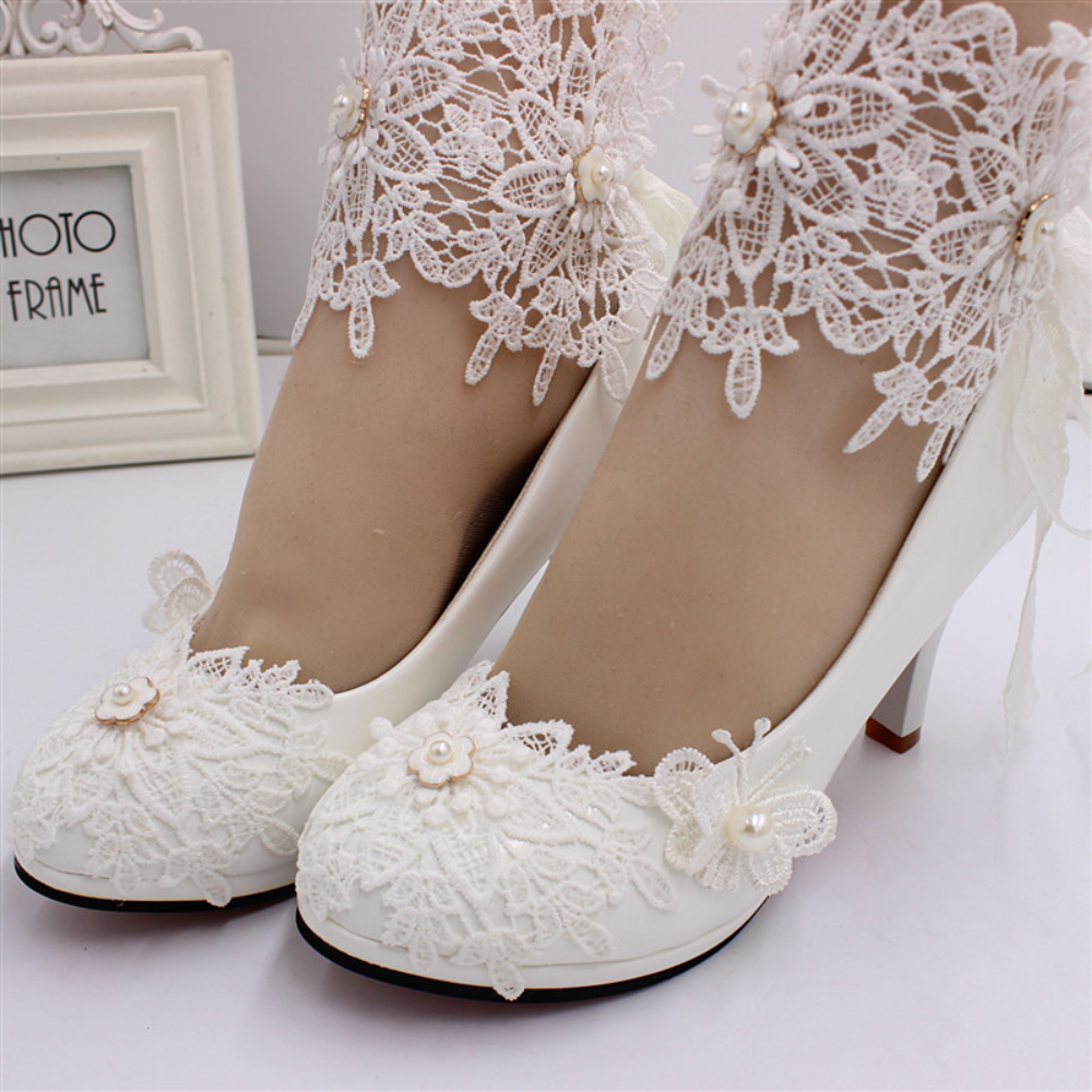 Bridal White Large Sizes High Heels 8cm Women's White Wedding Floral Lace Ankle Strap Chic Stilettos Sophisticated Look Textured White Heels